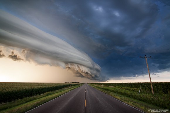 مظهر مذهل لا يصدق لسحابة القوس ظهرت في نبراسكا و هي عاصفة تتكون من مزيج مدهش من هيكل عاصفة كبيرة وإضاءة مثالية مع شمس وراء العاصفة .
